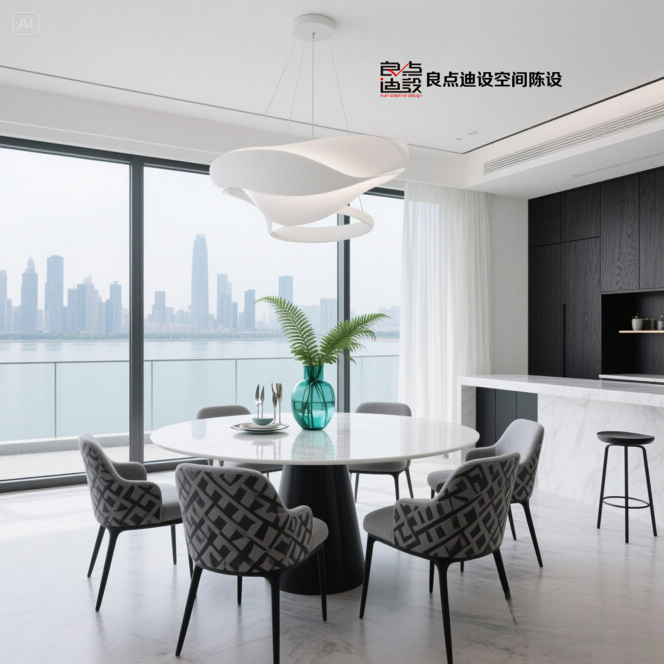 這窗景餐廳軟裝設(shè)計(jì)刷爆業(yè)主群!圓桌吊燈c...